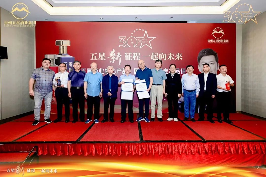 在五星酒業30周年盛典主會場,貴州大學釀酒與食品工程學院院長邱樹毅現場宣讀了品評結論:貴州五星核心產品,五十三度醬香型白酒具有以下特點:微黃透明、醬香突出,復合香舒適,酒體醇和、協調味長,空杯留香久,大曲醬香風格典型。